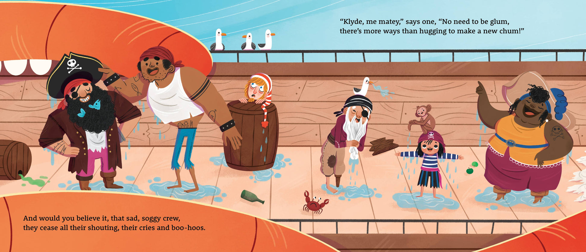Klyde the kraken loves nothing more than a good hug, but whenever he tries to hug the animals in the ocean, they all swim away. Then one day, the colossal creature's monstrous embrace takes down a pirate ship and the shipwrecked buccaneers surprise Klyde with a valuable lesson of emotional literacy: While many friends love to hug, others prefer different ways to greet their mateys.